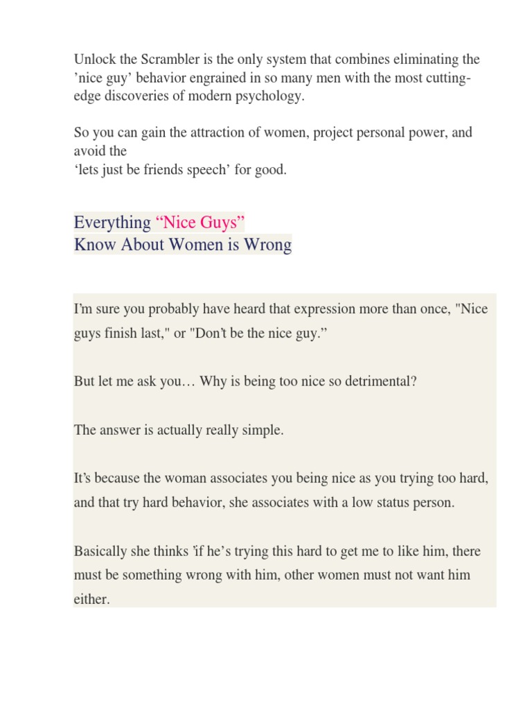 This is basically a method that 'scrambles' a girl's mind into thinking that the guy isn't . Uncertainty, power, validation/approval and anticipation. There is a new guide on the market called unlock her legs the . The scrambler is a technique was invented by rob judge and bobby rio. There are four steps in it, and they come in hierarchic order .